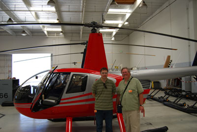 Raimonds and I in the delivery area, where brand new helicopters await delivery to their new owners. |